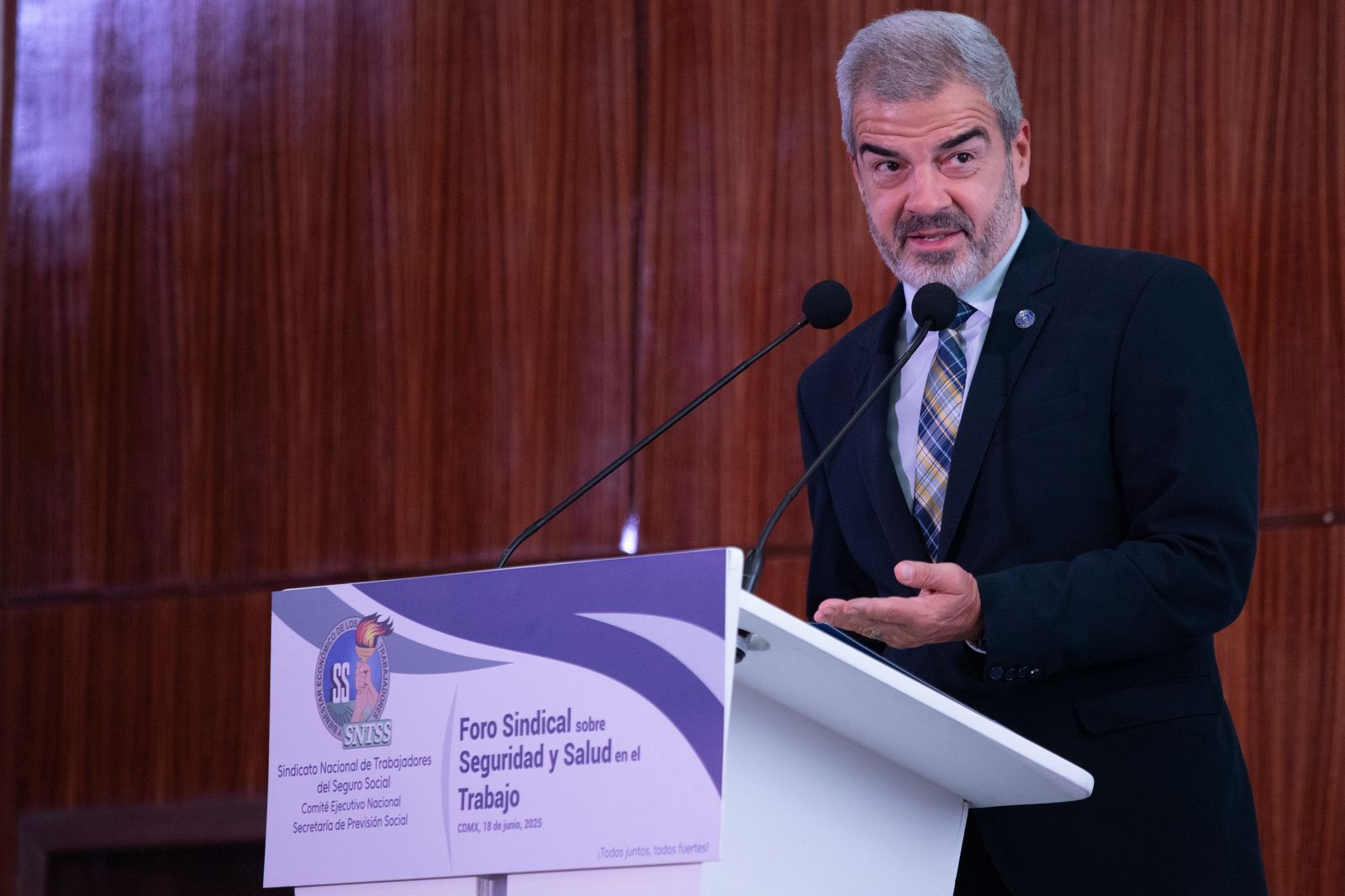 Por su parte, el Doctor Rafael Olivos Hernández, Secretario General del SNTSS, brindó su reconocimiento a todos los participantes del foro, asegurando que, para el Sindicato, la seguridad en el trabajo es una prioridad en la que se trabaja día a día para mantener empleos dignos y decentes.